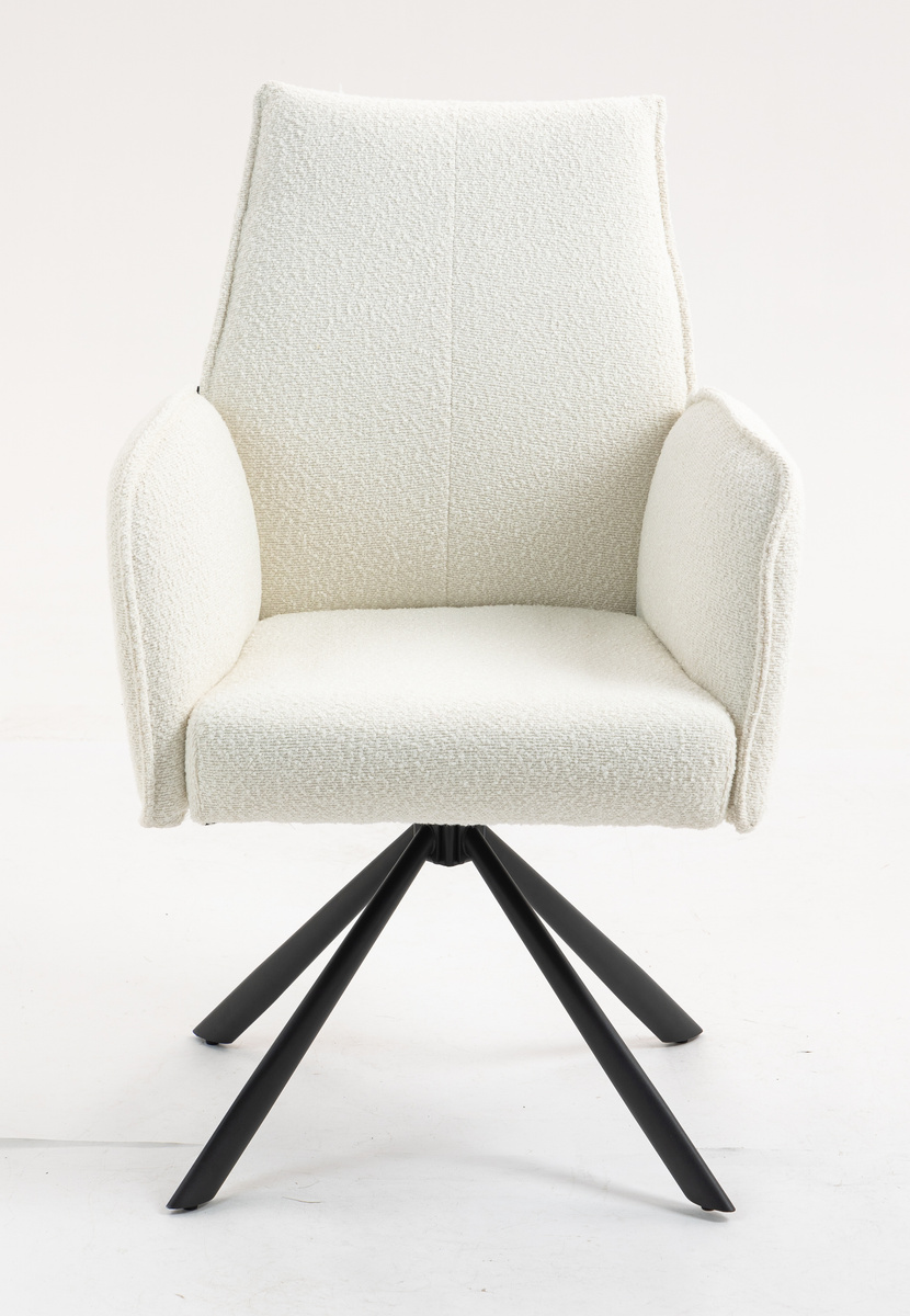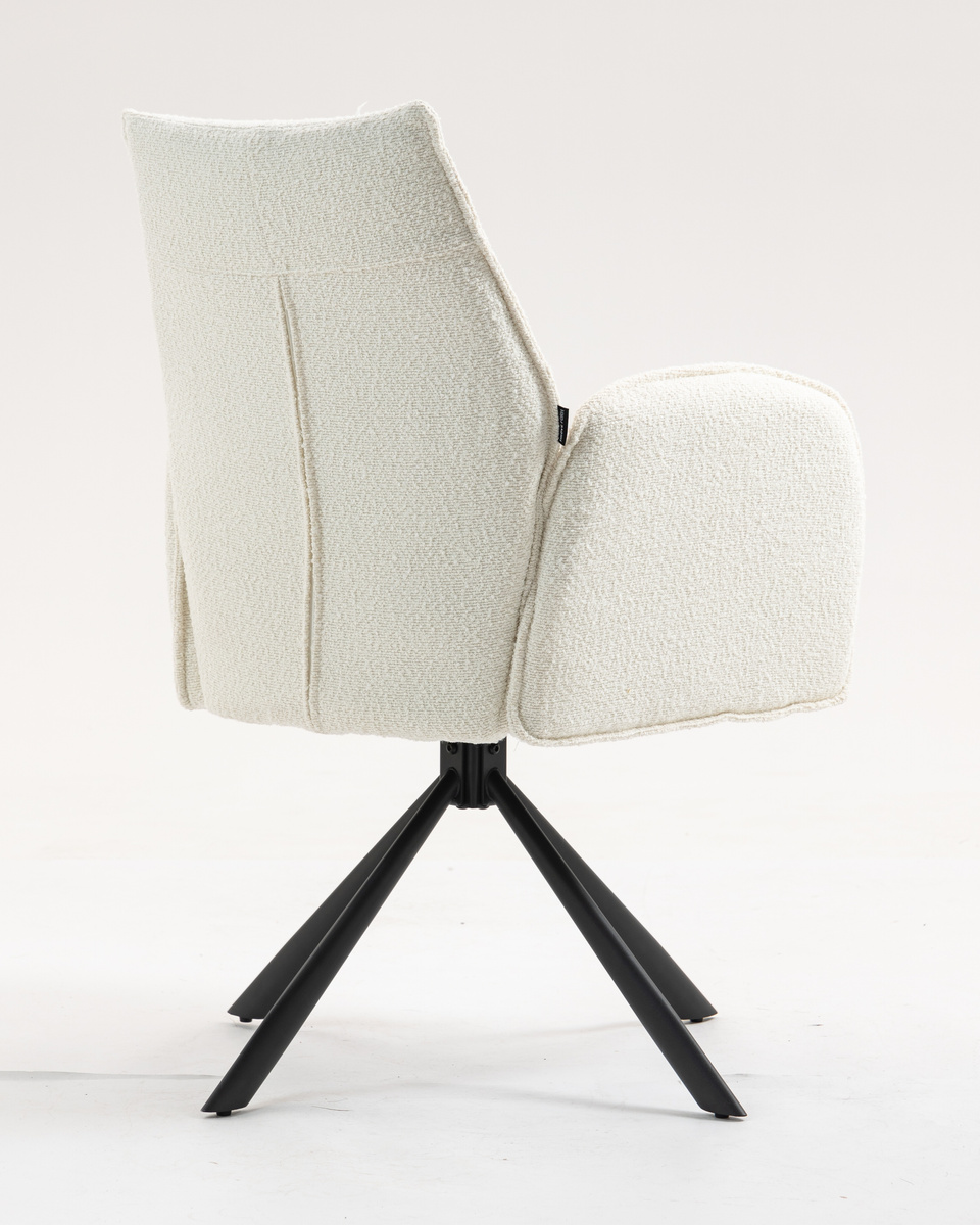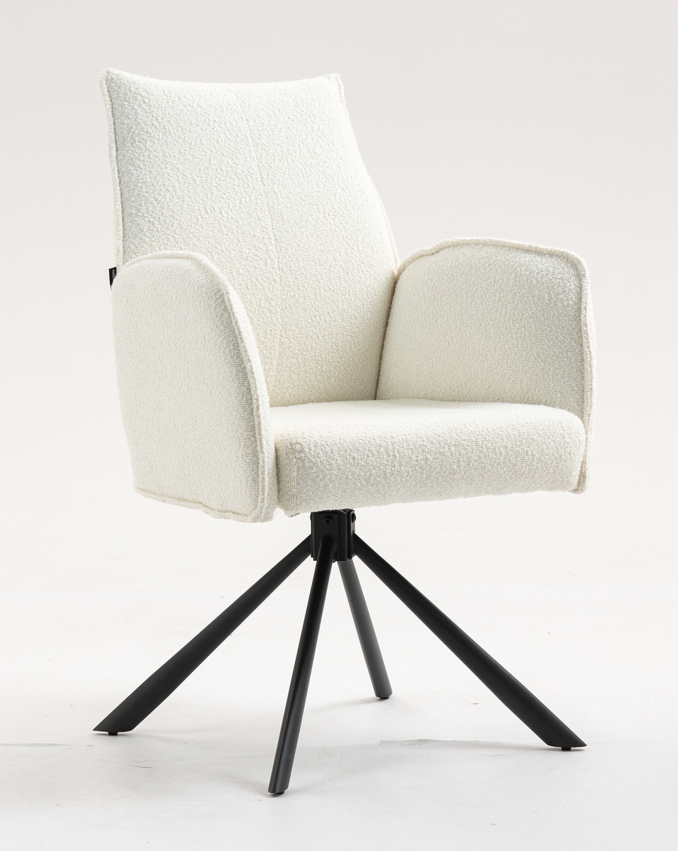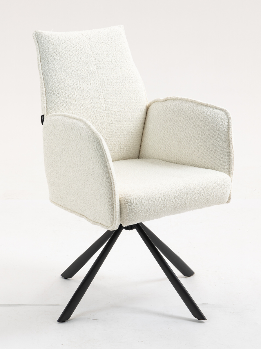 Fotel zaprojektowany z myślą o maksymalnym komforcie użytkowania. Siedzisko wykończone przyjemną w dotyku tkaniną typu boucle, charakteryzującą się nieregularną fakturą z miękkimi supełkami. Wysokie oparcie pod plecy i podłokietniki zapewniają wygodę nawe499,00 zł