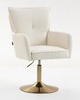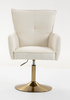 Fotel ten to połączenie wygody, elegancji i funkcjonalności. Szerokie siedzisko o nietypowym kształcie, tapicerowane ekoskórą w połączeniu ze szczotkowaną złotą nogą, tworzą doskonały duet, który doda nowoczesnej elegancji każdemu pomieszczeniu.