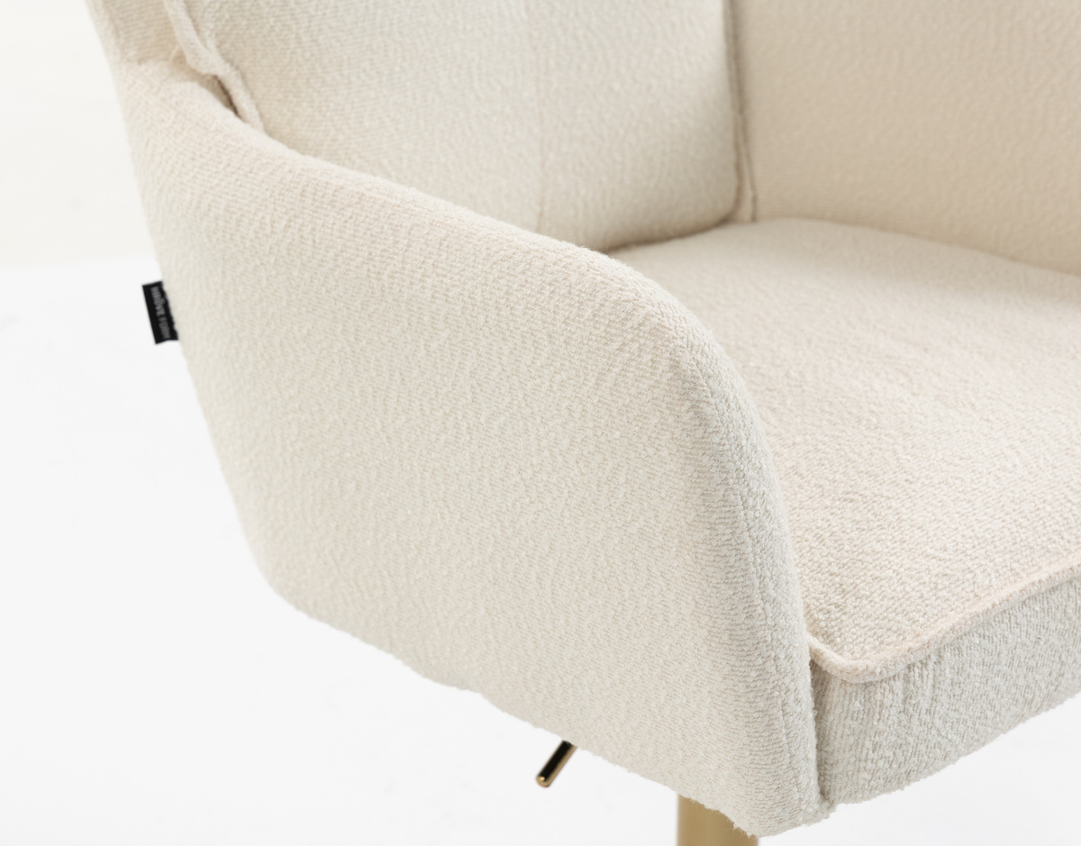 Szerokie siedzisko oraz wysokie, wygodne oparcie zapewniają komfort zarówno podczas dłuższego siedzenia, jak i krótkich momentów relaksu. Klasyczna linia fotela w połączeniu z przytulną fakturą bouclé tworzy harmonijną całość, która doskonale odnajdzie się w salonie, sypialni, domowym biurze czy eleganckich przestrzeniach hotelowych.