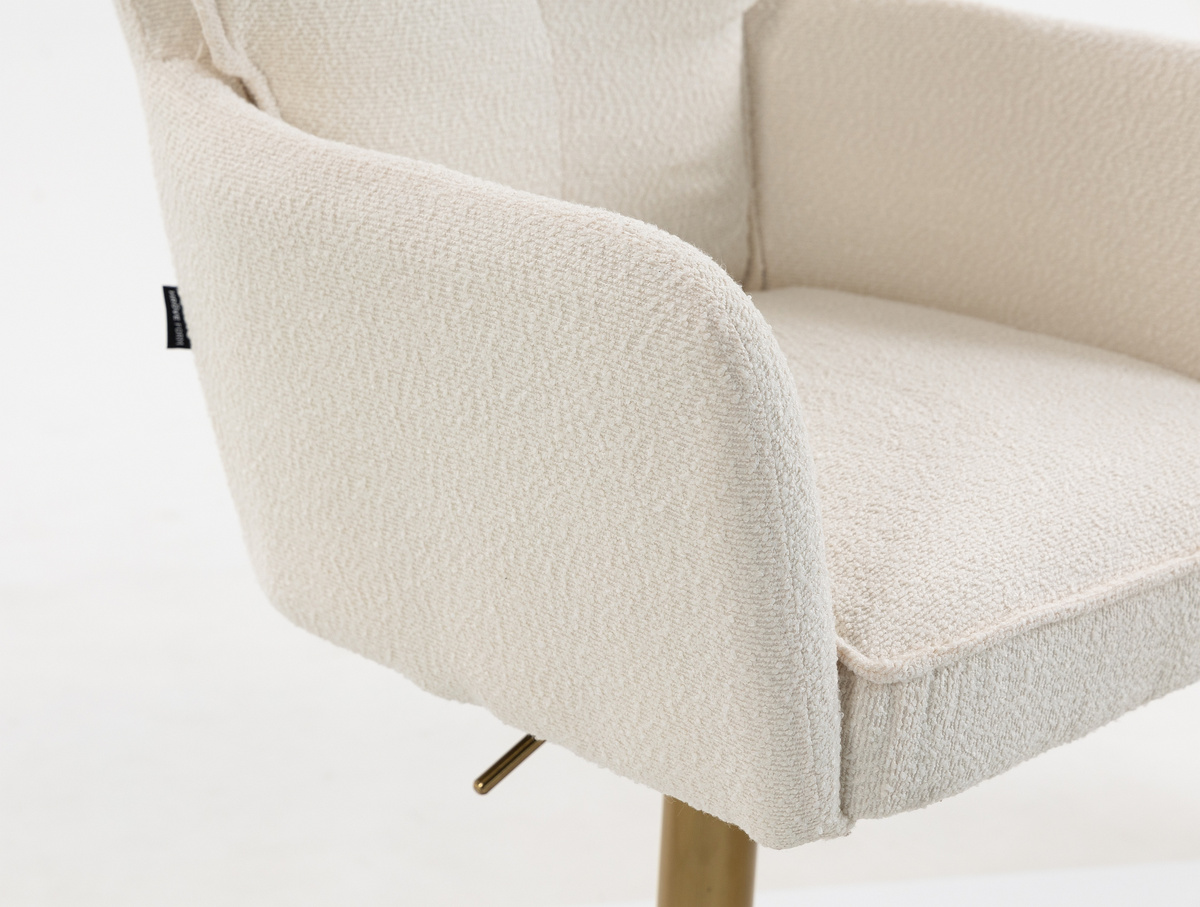 Szerokie siedzisko oraz wysokie, wygodne oparcie zapewniają komfort zarówno podczas dłuższego siedzenia, jak i krótkich momentów relaksu. Klasyczna linia fotela w połączeniu z przytulną fakturą bouclé tworzy harmonijną całość, która doskonale odnajdzie się w salonie, sypialni, domowym biurze czy eleganckich przestrzeniach hotelowych.